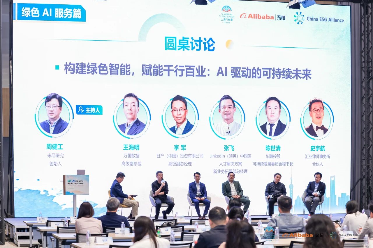 圆桌讨论环节由资深媒体人,未尽研究创始人周健工先生主持,汇聚了来自东鹏控股,万国数据 樱花视频,日产中国,领英中国及汇业律师事务所的行业领袖,共同探讨人工智能(AI)在推动各行业可持续发展中的关键作用和未来前景, 。