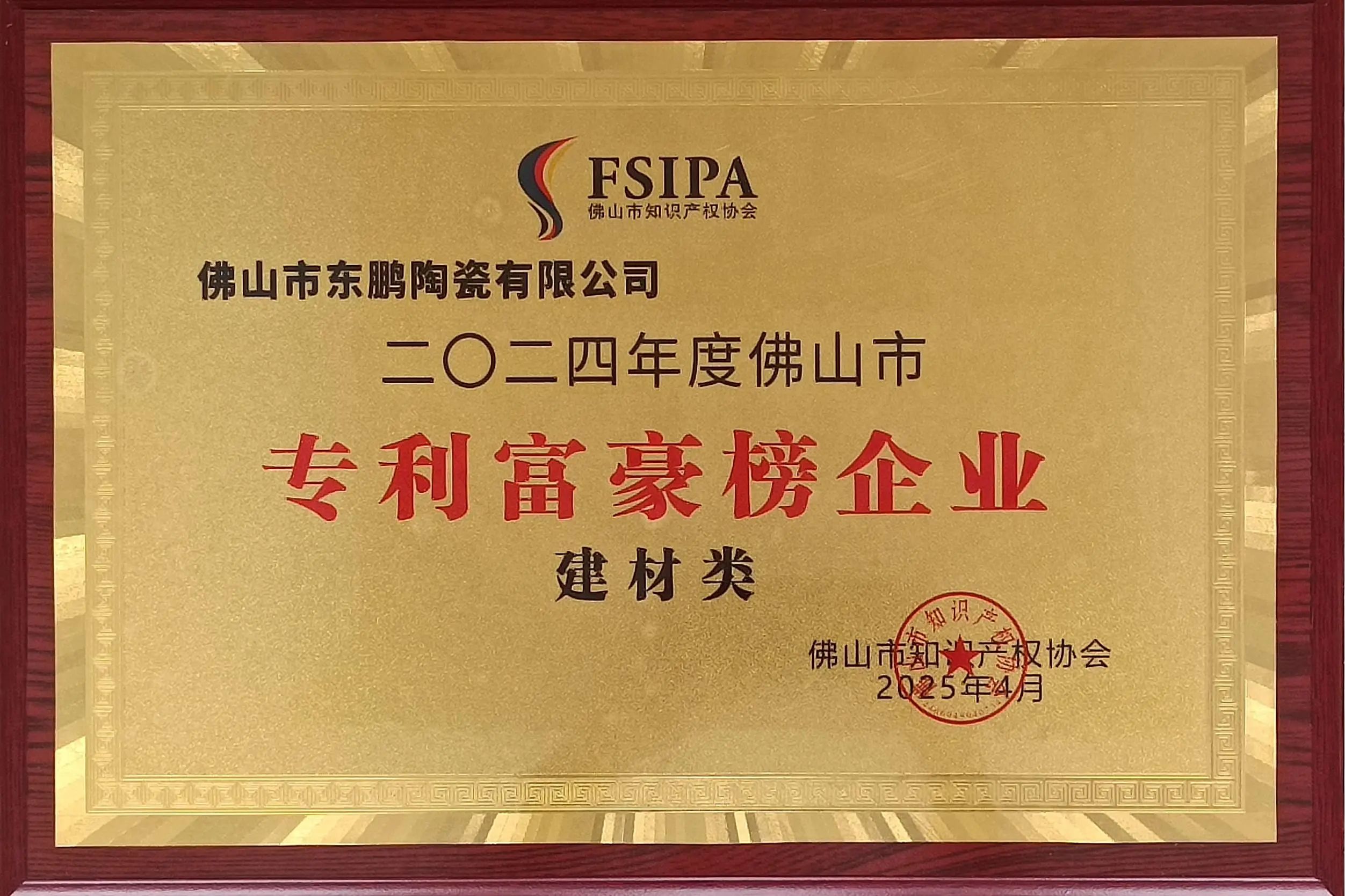 持续的科研耕耘,东鹏控股收获了在知识产权领域的认可,公司已持续获得四项中国专利优秀奖,并斩获广东省专利金奖(行业唯一)及优秀奖,国家建材与家居行业专利奖金奖及优秀奖等多项权威荣誉,同时,东鹏还荣膺国家知识产权示范企业,国家知识产权优势企业,广东省知识产权示范企业称号,是行业内唯一连续12年荣登佛山市专利富豪榜的企业 樱花视频,截至目前,东鹏已累计获得国家知识产权局授权的各类型有效专利1327项,其中发明专利414项, 。